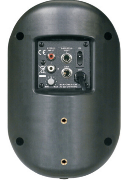 形态:有源分频音箱、单元:4寸纸盆单元,25mm音圈、灵敏度(1米/1W):90db、频率响应(-10db):76Hz-18KHz、阻抗:4欧、额定承受功率:40W(RMS)、接线端子:输入:RCA/6.3mm插座、并联输出:6.3mm插座、电源:220-240/50Hz、尺寸:136宽×140深×206高mm、重量:2.9-3.2Kg